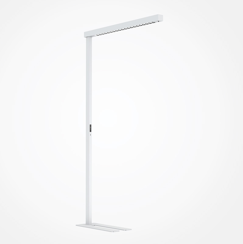 Die Stehleuchte FREE LINEAR stufenlos dimmbar und mit einem einstellbaren integrierten Bewegungs- und Tageslichtsensor ausgestattet. Die Bedienung erfolgt über ein in die Leuchte eingefasstes Touchpanel.